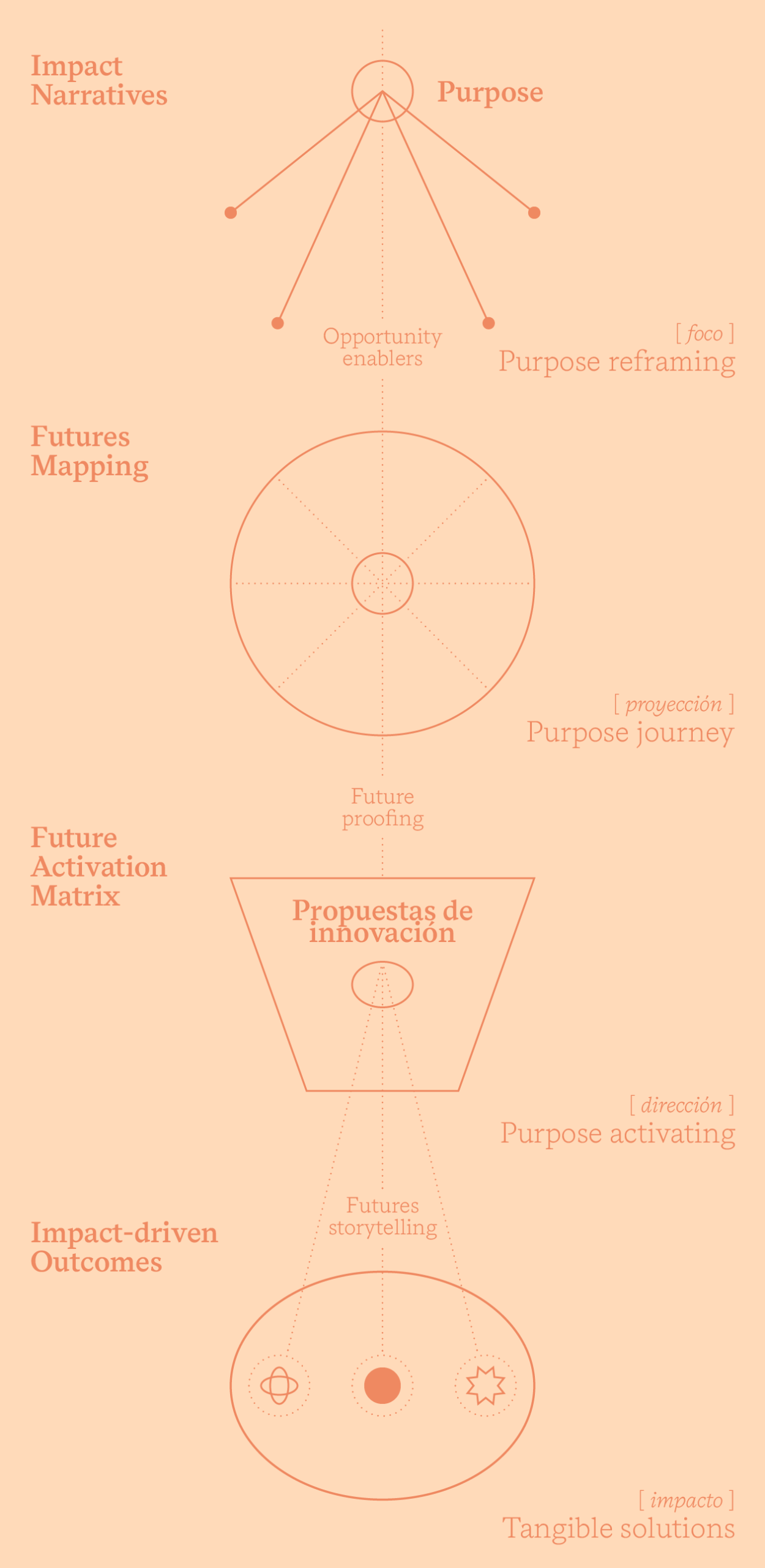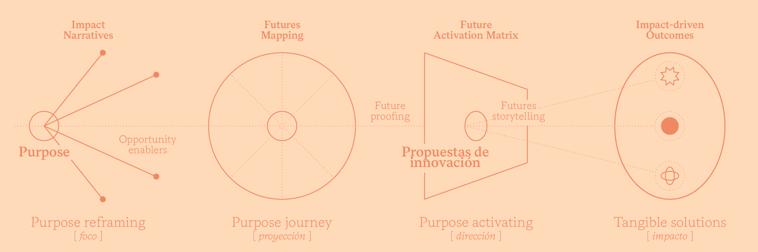 A través de una sesión inmersiva de inspiración estratégica que ayuda a los equipos de liderazgo a detectar señales de cambio, explorar nuevas posibilidades y visualizar horizontes de innovación a través del propósito.